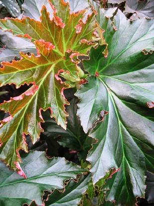 2 - 3 foot upright growing canes sporting large dark green angel wing leaves with burgundy reverse and large clusters of salmon-pink flowers. Use tall growing angel wing begonias as height elements in mixed containers. They also make good houseplants. Grow in shade to part sun in rich well draining soil and keep evenly moist.
